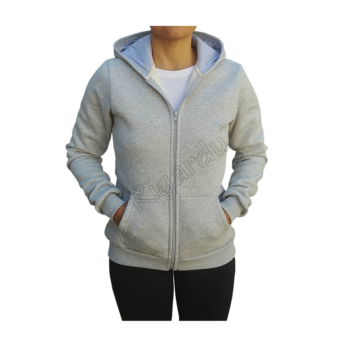 Buzo canguro de mujer con cierre y con capucha.